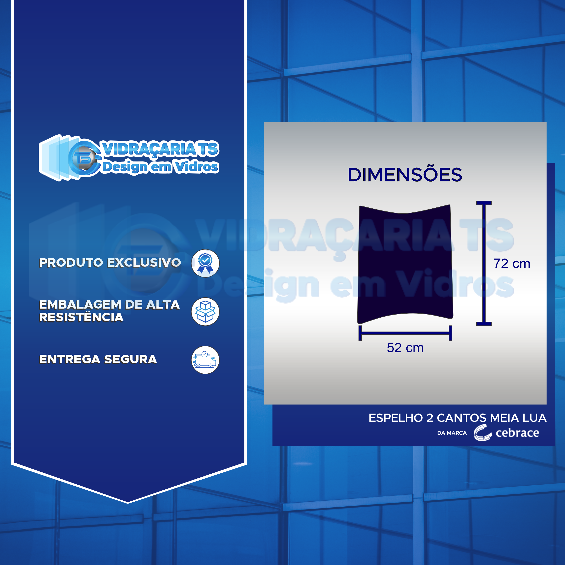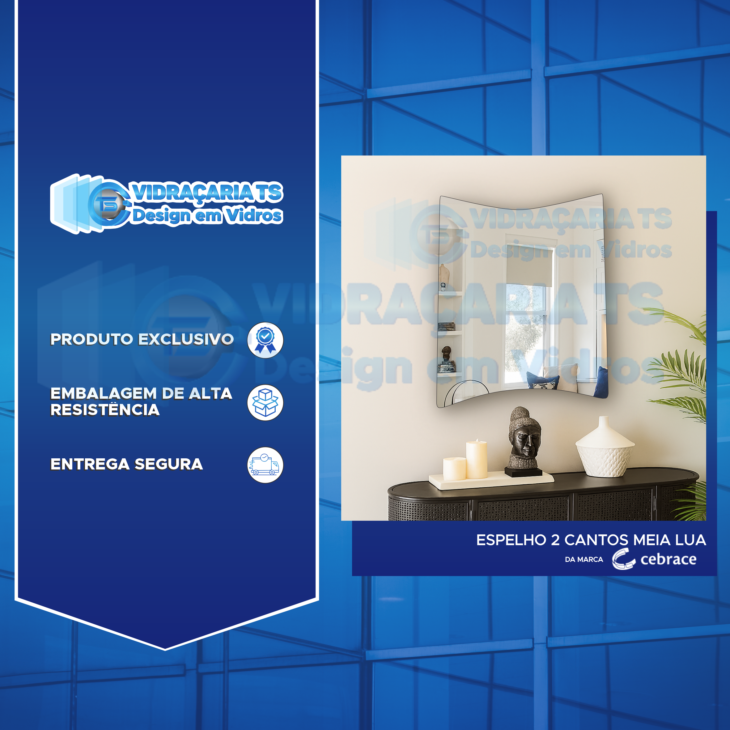 Com um toque sutil de design, o Espelho 2 Cantos Meia Lua de 3mm da Cebrace é perfeito para quem busca elegância sem exageros. Mede 72 cm x 52 cm, pesa 3 kg e pode ser usado em diversos espaços, trazendo amplitude e charme.